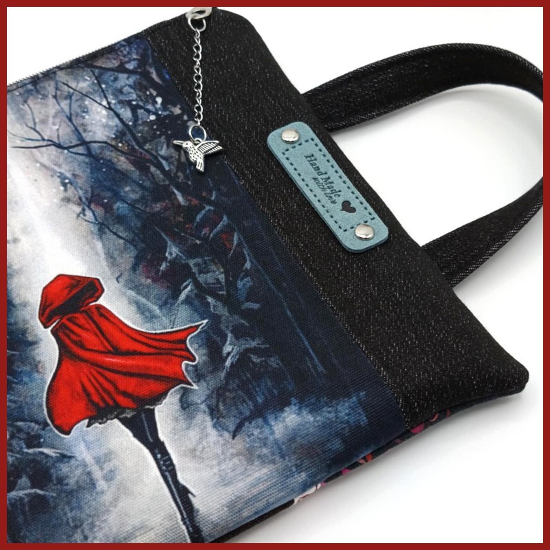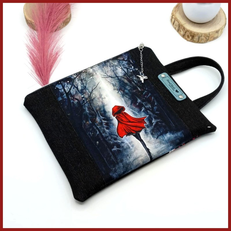 Recto (Côté Hiver Enchanté) : Une illustration captivante d'un Petit Chaperon Rouge moderne dans une forêt hivernale et mystérieuse. Cette œuvre sur coupon illustré en polycoton apporte une touche de magie et de profondeur.