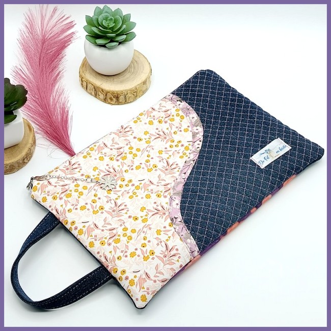 Les Bordures (Le Denim) : Les deux faces sont structurées par l'utilisation de jean recyclé (denim foncé) sur les bordures et la poignée, assurant une excellente tenue et un style intemporel.